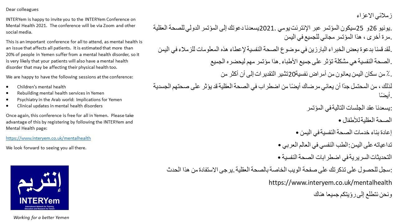 Call for abstracts and project summaries from colleagues in Yemen to present at the conference